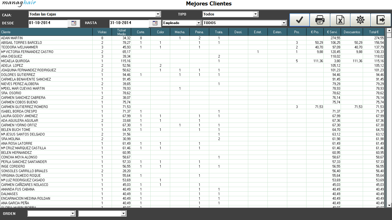Mejora tu atención al cliente utilizando los históricos detallados de servicios realizados y productos vendidos.